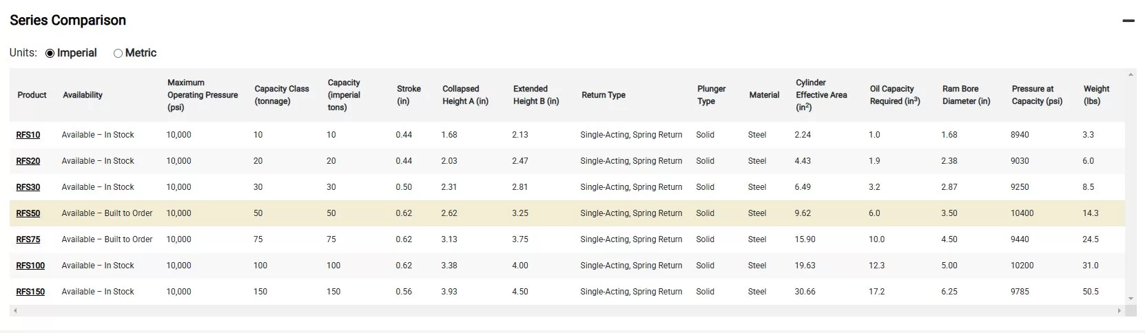 Model: RFS50 | Series: RFS | Product Line: Hydraulic Tools