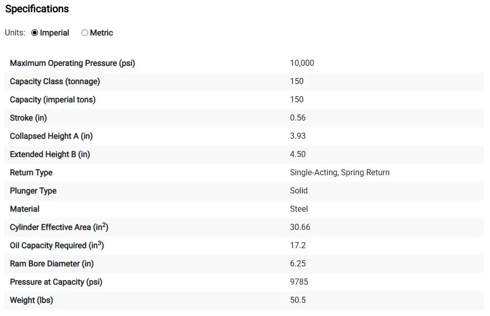 Simplex RFS Series Flat Jack Hydraulic Cylinders are engineered to apply hydraulic force in the tightest of spaces. The powerful return spring boosts efficiency by quickly returning the plated plunger to its starting position, and the cylinder exterior is finished in an enamel coating to extend cylinder life. The design also features a wiper to protect the inner cylinder assembly from dirt, moisture, and other contaminants.